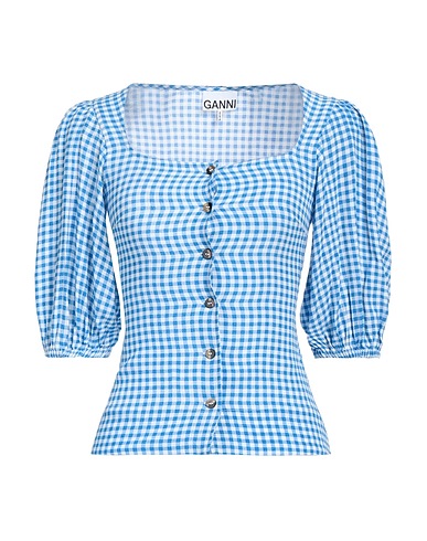 tela, senza applicazioni, a quadri, scollatura quadrata, maniche a 3/4, senza tasche, camicia