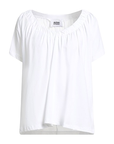 t-shirt, jersey, tessuto elasticizzato, tinta unita, arricciato, collo a v, maniche corte, lavare a mano o a secco, non candeggiare, non asciugare in asciugatrice