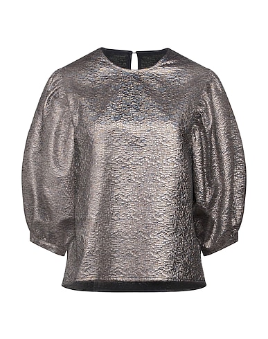 lamè, senza applicazioni, bicolore, collo tondo, maniche a 3/4, 1 bottone, senza tasche, lavare in lavatrice o a secco, non candeggiare, non asciugare in asciugatrice, top