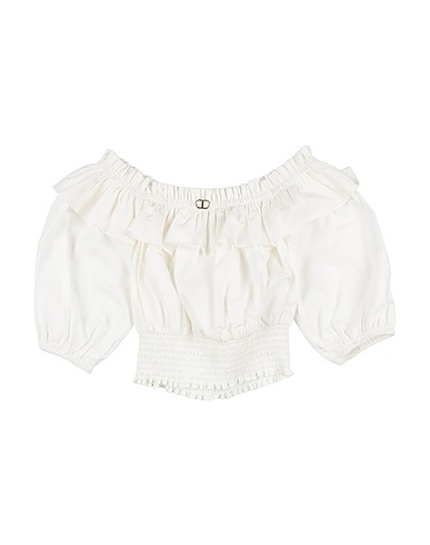 tela, ruches, arricciato, brand logo, tinta unita, collo ampio, maniche corte, senza tasche, elasticizzato, lavare a mano, non candeggiare, non asciugare in asciugatrice