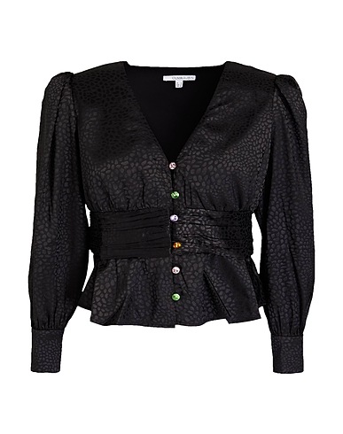 camicia peplum, raso, jacquard, tinta unita, senza applicazioni, collo a v, maniche lunghe, chiusura con bottoni, lavare in lavatrice o a secco, non candeggiare, non asciugare in asciugatrice