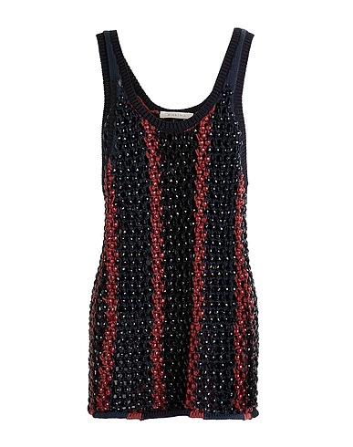 top, in maglia, maglia media, a righe, cristalli, collo tondo, senza maniche, lavare a secco, non candeggiare, non asciugare in asciugatrice