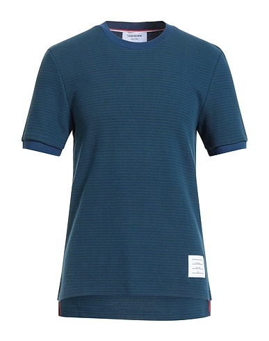 t-shirt fantasia, jersey, a righe, brand logo, collo tondo, maniche corte, fondo con spacchetti laterali, lavare a mano o a secco, non candeggiare, non asciugare in asciugatrice