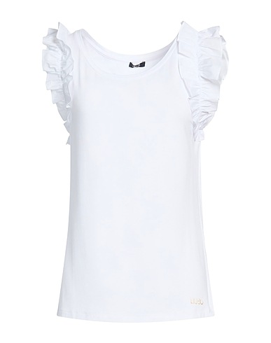 top con ruches, jersey, tinta unita, brand logo, collo tondo, senza maniche, elasticizzato, lavare in lavatrice, non candeggiare, non asciugare in asciugatrice