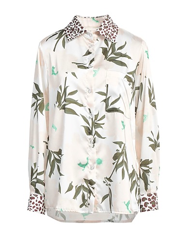 camicia, raso, fantasia floreale, fantasia leopardata, senza applicazioni, collo classico, maniche lunghe, chiusura con bottoni, taschino singolo, lavare a secco, non candeggiare, non asciugare in asciugatrice
