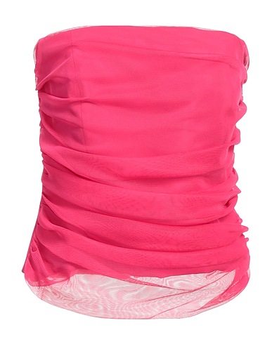top, tulle, tinta unita, drappeggiato, senza spalline, senza maniche, interno foderato, chiusura con zip, lavare in lavatrice o a secco, non candeggiare, non asciugare in asciugatrice
