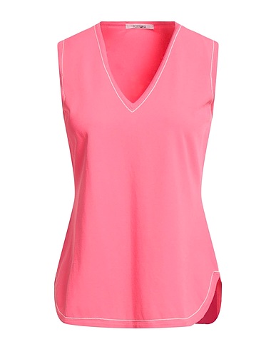 top, jersey, tinta unita, finiture profilate, collo a v, senza maniche, lavare a mano o a secco, non candeggiare, non asciugare in asciugatrice, questo brand veste piccolo