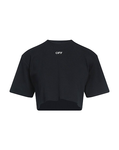 crop tee, jersey, a coste, tinta unita, logo ricamato, collo tondo, maniche corte, elasticizzato, lavare in lavatrice o a secco, non candeggiare, non asciugare in asciugatrice