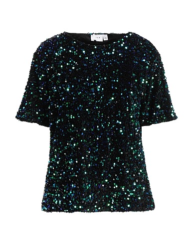 top, ciniglia, tessuto elasticizzato, tinta unita con applicazioni, paillettes, collo tondo, maniche corte, lavare in lavatrice, non candeggiare, non asciugare in asciugatrice