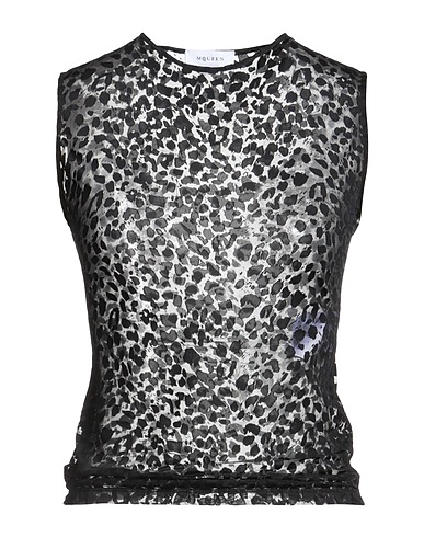 top, tulle, fantasia leopardata, stampa, arricciato, collo tondo, senza maniche, lavare a secco, non candeggiare, non asciugare in asciugatrice