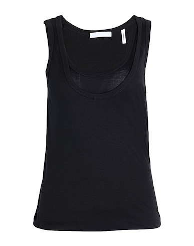 jersey, tinta unita, senza applicazioni, collo tondo, senza maniche, lavare in lavatrice, non candeggiare, non asciugare in asciugatrice, questo brand veste piccolo
