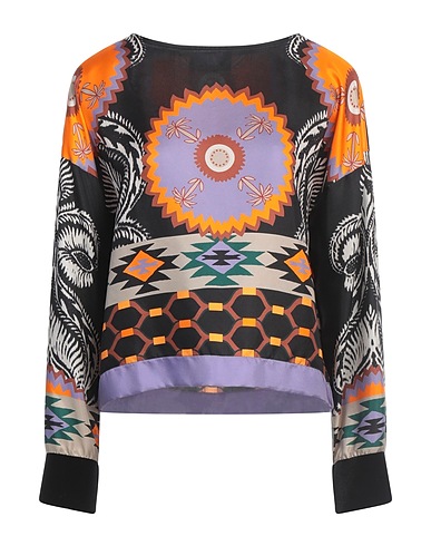 top, twill, ciniglia, multicolore, senza applicazioni, collo tondo, maniche lunghe, lavare a secco, non candeggiare, non asciugare in asciugatrice