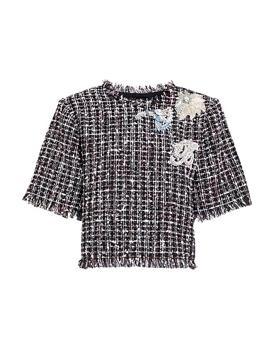 top, tweed, multicolore, decorato, collo tondo, maniche corte, lavare a secco, non candeggiare, non asciugare in asciugatrice