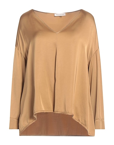 top, raso, tinta unita, brand logo, collo a v, maniche lunghe, lavare in lavatrice o a secco, non candeggiare, non asciugare in asciugatrice