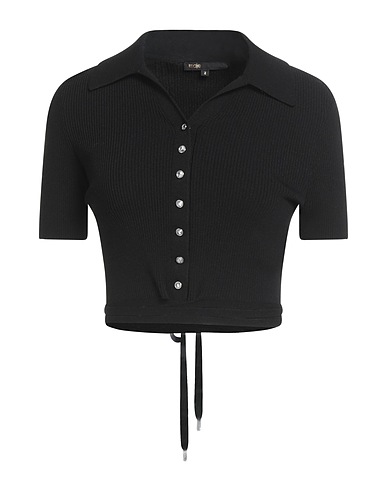 crop top, in maglia, a coste, maglia leggera, tinta unita, senza applicazioni, colletto aperto, maniche corte, chiusura con bottoni automatici, elasticizzato, lavare a mano, non candeggiare, non asciugare in asciugatrice
