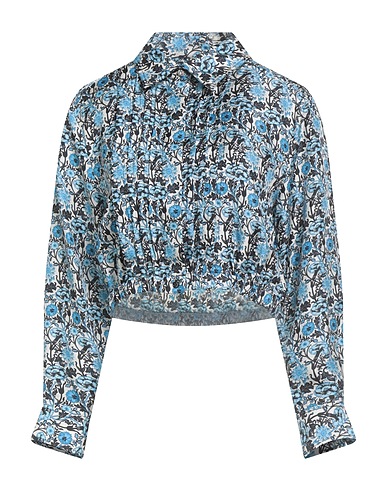 camicia, twill, raso, fantasia floreale, cropped, plissettato, collo classico, maniche lunghe, polsini con automatici, chiusura con bottoni, fondo con elastico, lavare a secco, non candeggiare, non asciugare in asciugatrice