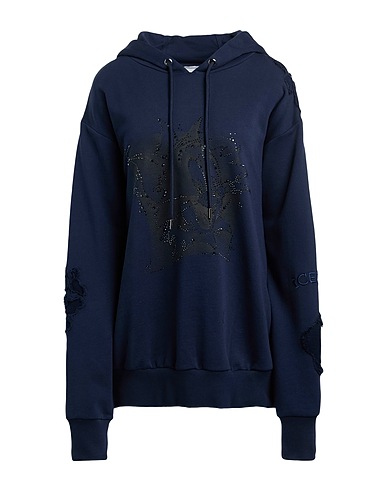 felpa, in maglia, effetto consumato, maglia leggera, tinta unita con stampa, cristalli, collo con cappuccio, maniche lunghe, lavare a mano, non candeggiare, non asciugare in asciugatrice, questo brand veste piccolo