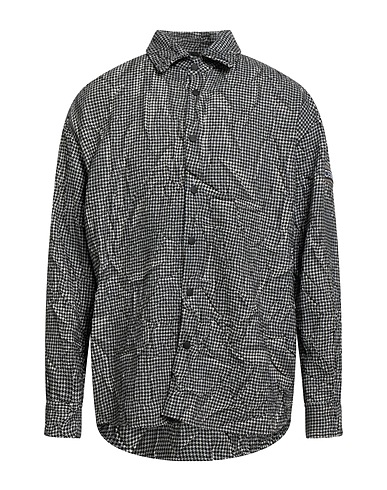 camicia oversize, flanella, effetto stropicciato, pied de poule, brand logo, collo con revers, maniche lunghe, polsini con automatici, chiusura con bottoni automatici, lavare a mano, non candeggiare, non asciugare in asciugatrice, questo brand veste piccolo