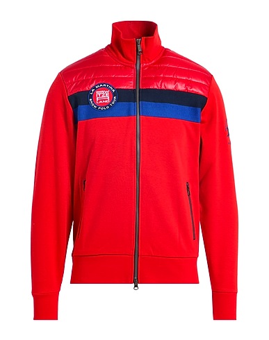 felpa francese, tessuto tecnico, multicolore, logo ricamato, collo alto, maniche lunghe, interno parzialmente imbottito, chiusura con zip, tasche con zip, lavare in lavatrice, non candeggiare, non asciugare in asciugatrice