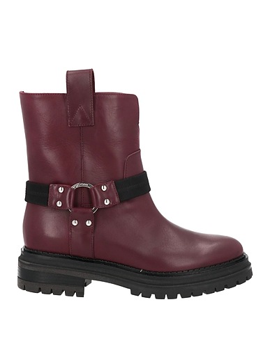 stivaletti bikers, pelle, tinta unita, decorato, interno in pelle, punta tonda, tacco squadrato, tacco in gomma, suola carrarmata, contiene parti non tessili di origine animale