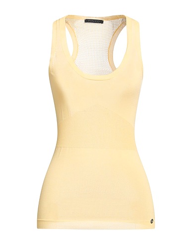 in maglia, tinta unita basic, brand logo, collo tondo, senza maniche, senza tasche