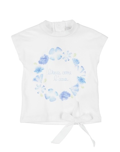 jersey, stampa, fiocco, fantasia floreale, collo alto, maniche corte, chiusura con bottoni automatici, senza tasche, elasticizzato, lavare in lavatrice o a secco, non asciugare in asciugatrice, non candeggiare