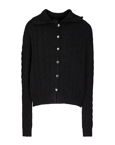 lavorato a maglia, lavorazione a trecce, maglia media, senza applicazioni, tinta unita, collo claudine, maniche lunghe, bottoni, senza tasche