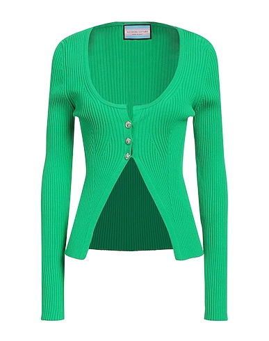 lavorato a maglia, maglia media, strass, tinta unita con applicazioni, collo ampio, maniche lunghe, bottoni, senza tasche