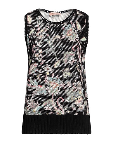 lavorato a maglia, maglia leggera, brand logo, fantasia floreale, collo tondo, senza maniche, senza tasche