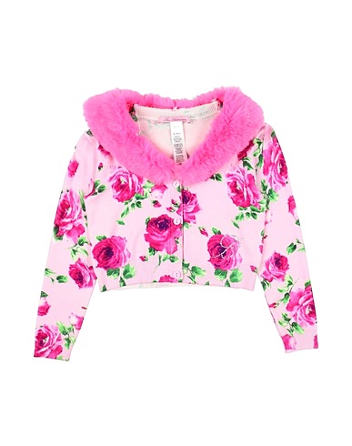 in maglia, pelo sintetico, maglia leggera, brand logo, cristalli, applicazione removibile, fantasia floreale, maniche lunghe, chiusura con bottoni, senza tasche, lavare a mano, non candeggiare, non asciugare in asciugatrice