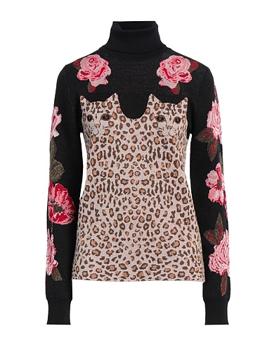 in maglia, maglia leggera, senza applicazioni, fantasia leopardata, fantasia floreale, collo alto, maniche lunghe, senza tasche, lavare a mano o a secco, non candeggiare, non asciugare in asciugatrice