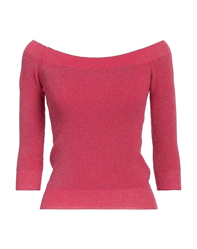 in maglia, metallizzato, maglia leggera, tinta unita, brand logo, scollatura a barca, maniche a 3/4, lavare a mano o a secco, non candeggiare, non asciugare in asciugatrice