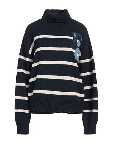 in maglia, maglia leggera, brand logo, a righe, collo alto, maniche lunghe, lavare a secco, non candeggiare, non asciugare in asciugatrice