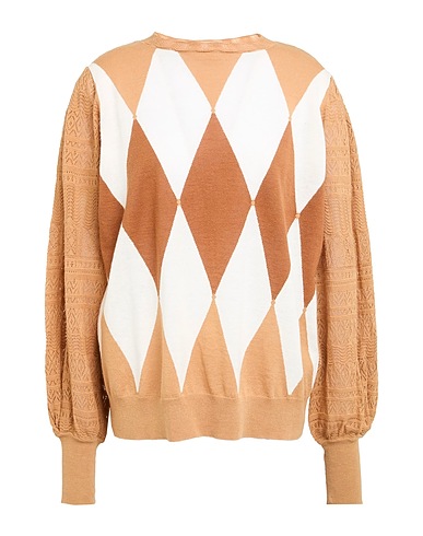 in maglia, maglia leggera, fantasia geometrica, senza applicazioni, collo tondo, maniche lunghe, lavare in lavatrice, non candeggiare, non asciugare in asciugatrice