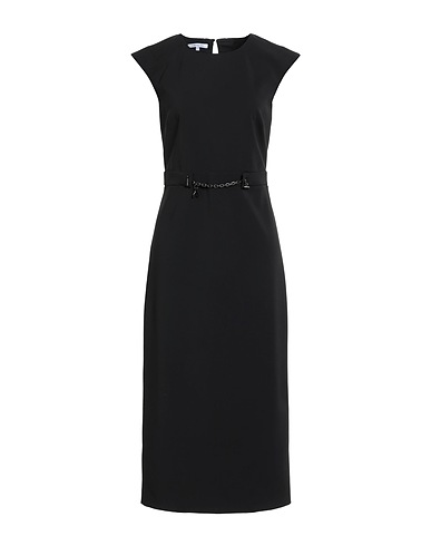 vestito a tubino, crêpe, tessuto elasticizzato, tinta unita con applicazioni, brand logo, applicazione removibile, collo tondo, maniche corte, interno parzialmente foderato, 1 bottone, chiusura con zip, senza tasche, spacco sul retro, lavare a secco, non candeggiare, non asciugare in asciugatrice
