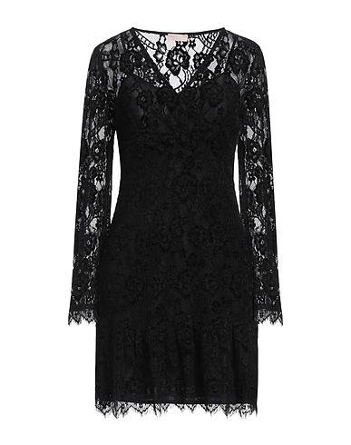 vestito svasato, pizzo, tinta unita, brand logo, collo a v, maniche lunghe, sottoveste interna, lavare in lavatrice, non asciugare in asciugatrice