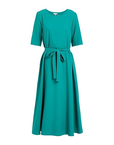 vestito svasato, crêpe, tinta unita, cintura, collo tondo, maniche corte, interno foderato, senza tasche, elasticizzato, contiene parti non tessili di origine animale, lavare in lavatrice o a secco, non candeggiare, non asciugare in asciugatrice