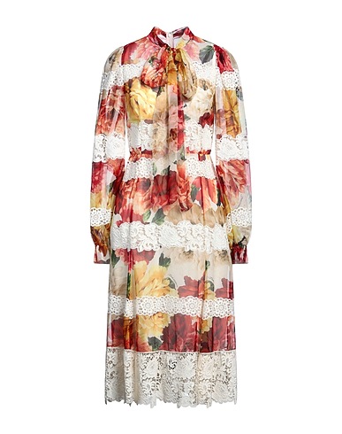 pizzo, chiffon, brand logo, fantasia floreale, collo con fiocco, maniche lunghe, chiusura con zip, lavare a secco, non candeggiare, non asciugare in asciugatrice, vestito svasato
