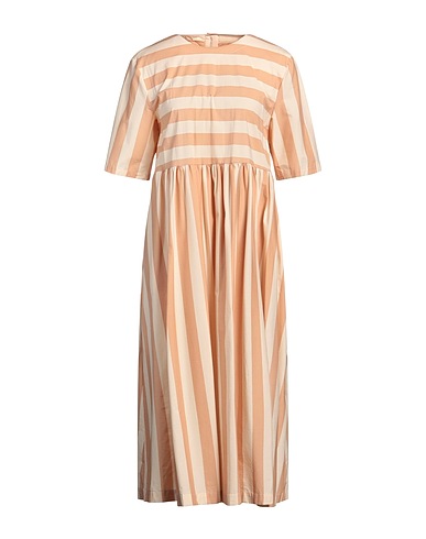 vestito svasato, tela, a righe, senza applicazioni, arricciato, collo tondo, maniche corte, interno foderato, chiusura con bottoni, elasticizzato, lavare a mano o a secco, non candeggiare, non asciugare in asciugatrice