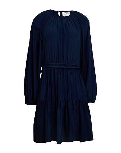 vestito svasato, crêpe, tinta unita, senza applicazioni, collo tondo, maniche lunghe, interno sfoderato, 1 bottone, lavare in lavatrice o a secco, non candeggiare, non asciugare in asciugatrice