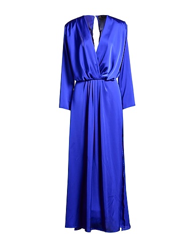 vestito svasato, raso, tinta unita, arricciato, cintura, scollatura profonda, maniche lunghe, con spalline imbottite, 1 bottone, lavare in lavatrice, non candeggiare, non asciugare in asciugatrice, dress-code elegante perfetto da damigella, da wedding-guest o per ogni occasione speciale