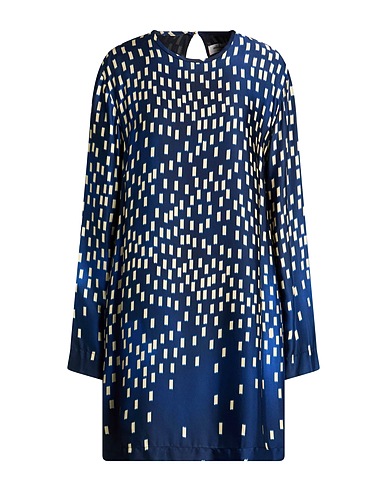 vestito svasato, raso, multicolore, intagli, collo tondo, maniche lunghe, interno foderato, chiusura con bottoni, senza tasche, lavare in lavatrice o a secco, non candeggiare, non asciugare in asciugatrice