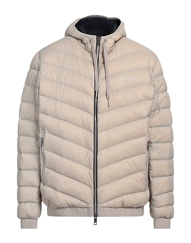 piumino corto, tessuto tecnico, brand logo, tinta unita, collo con cappuccio, maniche lunghe, interno in piuma d'anatra, imbottitura leggera, chiusura con zip, tasche con zip, contiene parti non tessili di origine animale, lavare in lavatrice, non candeggiare, non asciugare in asciugatrice, non stirare