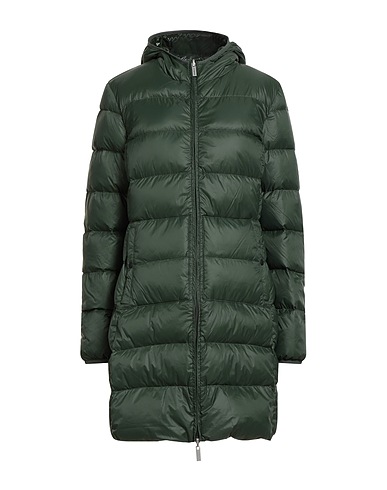tessuto tecnico, brand logo, tinta unita, collo con cappuccio, monopetto, maniche lunghe, interno in piuma d'oca, zip, multitasche, double face, contiene parti non tessili di origine animale, modello monopetto