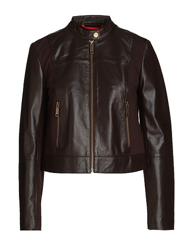 pelle, jersey, senza applicazioni, tinta unita, collo alla coreana, monopetto, maniche lunghe, interno parzialmente foderato, automatici, zip, multitasche, tasca con zip, contiene parti non tessili di origine animale, modello biker