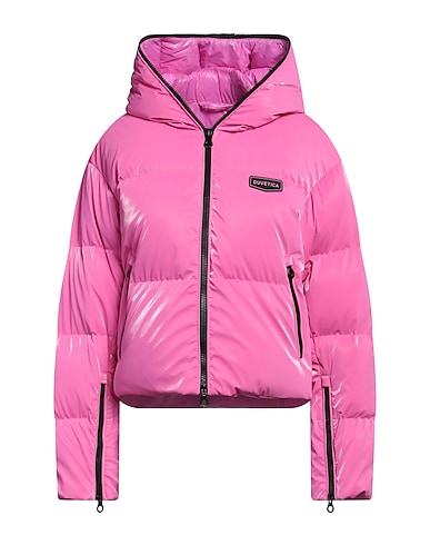 piumino corto, tessuto tecnico, brand logo, tinta unita, collo con cappuccio, monopetto, maniche lunghe, interno in piuma d'oca, chiusura con zip, tasche con zip, contiene parti non tessili di origine animale, lavare a mano, non candeggiare, non asciugare in asciugatrice