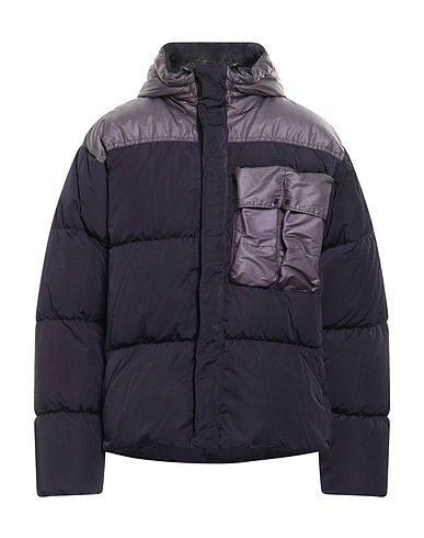 giacca imbottita, tessuto tecnico, brand logo, bicolore, collo con cappuccio, maniche lunghe, imbottitura sintetica, imbottitura pesante, chiusura con zip, chiusura con bottoni automatici, multitasche, lavare in lavatrice, non candeggiare, non asciugare in asciugatrice