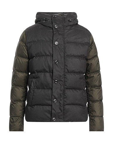 piumino corto, tessuto tecnico, bicolore, brand logo, collo con cappuccio, maniche lunghe, interno in piuma d'oca, chiusura con zip, multitasche, contiene parti non tessili di origine animale, lavare in lavatrice o a secco, non candeggiare, non asciugare in asciugatrice