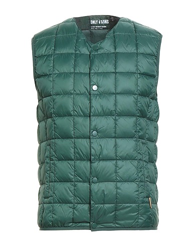 tessuto tecnico, trapuntato, brand logo, tinta unita, collo a v, senza maniche, interno in piuma d'oca, imbottitura leggera, chiusura con bottoni automatici, tasche a fessura, contiene parti non tessili di origine animale, lavare in lavatrice, non candeggiare, non asciugare in asciugatrice