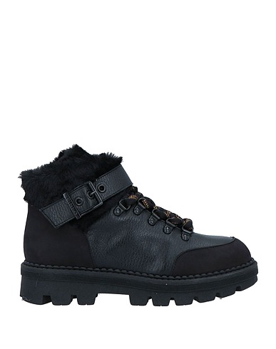 stivaletti imbottiti, pelle, pelo sintetico, tinta unita, brand logo, interno in pelle, chiusura con lacci, chiusura con fibbia, punta tonda, tacco squadrato, tacco in gomma, suola carrarmata, contiene parti non tessili di origine animale